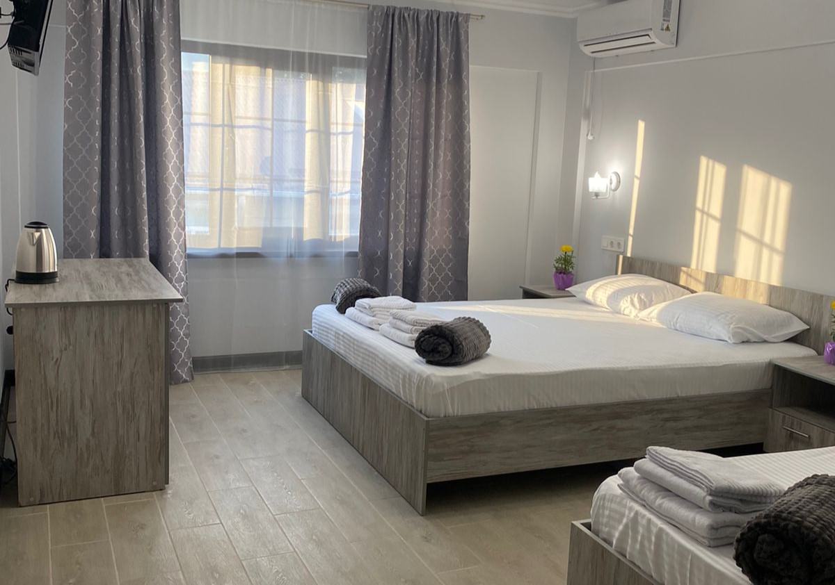 Для размещения предлагаются однокомнатные 2-3 местные номера, полностью благоустроенные и укомплектованные необходимой мебелью и техникой. В каждом номере есть сплит-система, ТВ, чайник, ванная комната с душем. В свободном доступе Wi-Fi. В распоряжении гостей кухня, где они могут приготовить или разогреть себе еду. Есть гладильные принадлежности, прачечная.