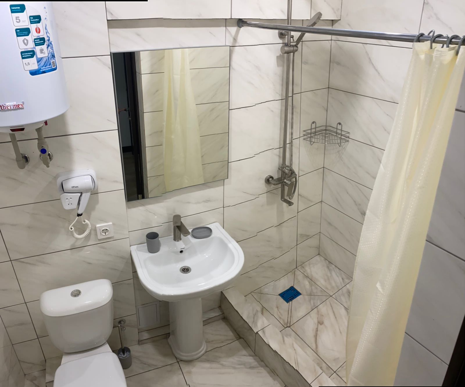 3 осн. места. 1 доп. место. Мебель: кровать двуспальная, кровать односпальная, прикроватные тумбочки, шкаф. Оборудование: сплит-система, телевизор, холодильник, электрочайник. Санузел. Сервис: Wi-Fi бесплатно, смена полотенец, смена постельного белья, уборка номера.